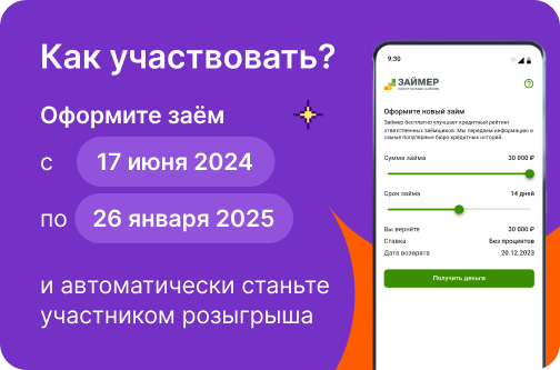 Чтобы принять участие в розыгрыше, необходимо оформить заём в даты проведения акции.